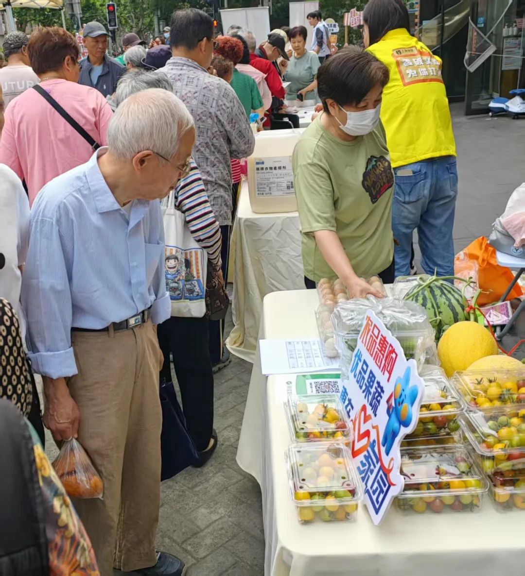 “心家园”公益服务项目首次携手“驻村第一书记‘惠农市集’”一同走进黄浦区老西门党群服务中心,让老百姓在家门口就可以买到绿色、新鲜、实惠的农副产品。