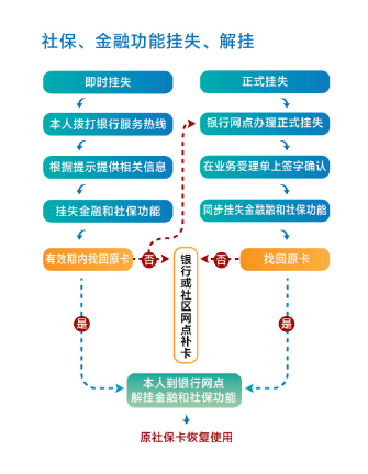2、持卡人可先办理社保、金融功能临时挂失,再办理正式挂失,也可直接办理正式挂失。