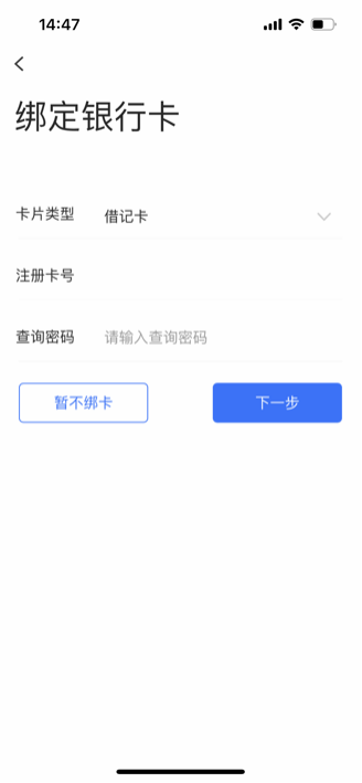 3、通过手机号登录注册客户验证手机号后进入绑定银行卡页面。