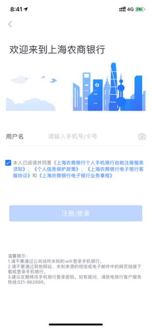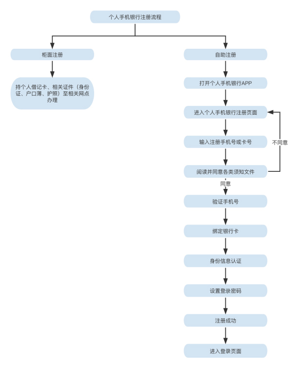 客户可通过任意一张本行借记卡(非94开头)自助注册开通手机银行,该借记卡将自动成为手机银行下挂的普通账户。如客户已通过本行柜面完成手机银行注册,则可直接进行登录。