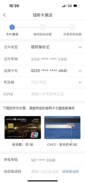 第三步:输入相关信息,点击激活按钮,通过校验后,按照指示即可进行卡片激活。